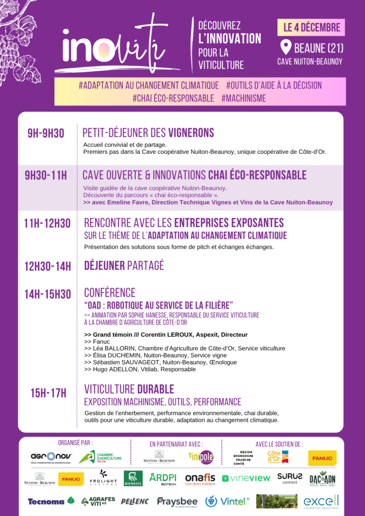 🍇 La journée de l’innovation dédiée à la filière viti-vinicole en Région Bourgogne-Franche-Comté revient pour une quatrième édition 🤩 Avec portes ouvertes et visite guidée exceptionnelle de la Cave Nuiton Beaunoy.