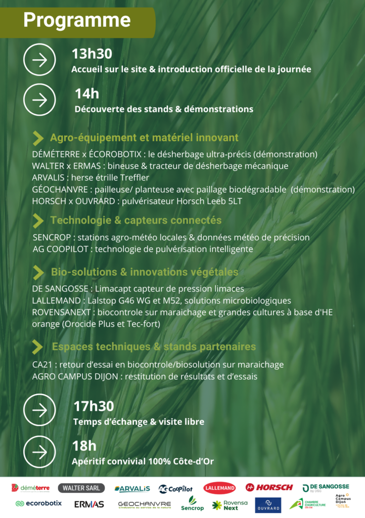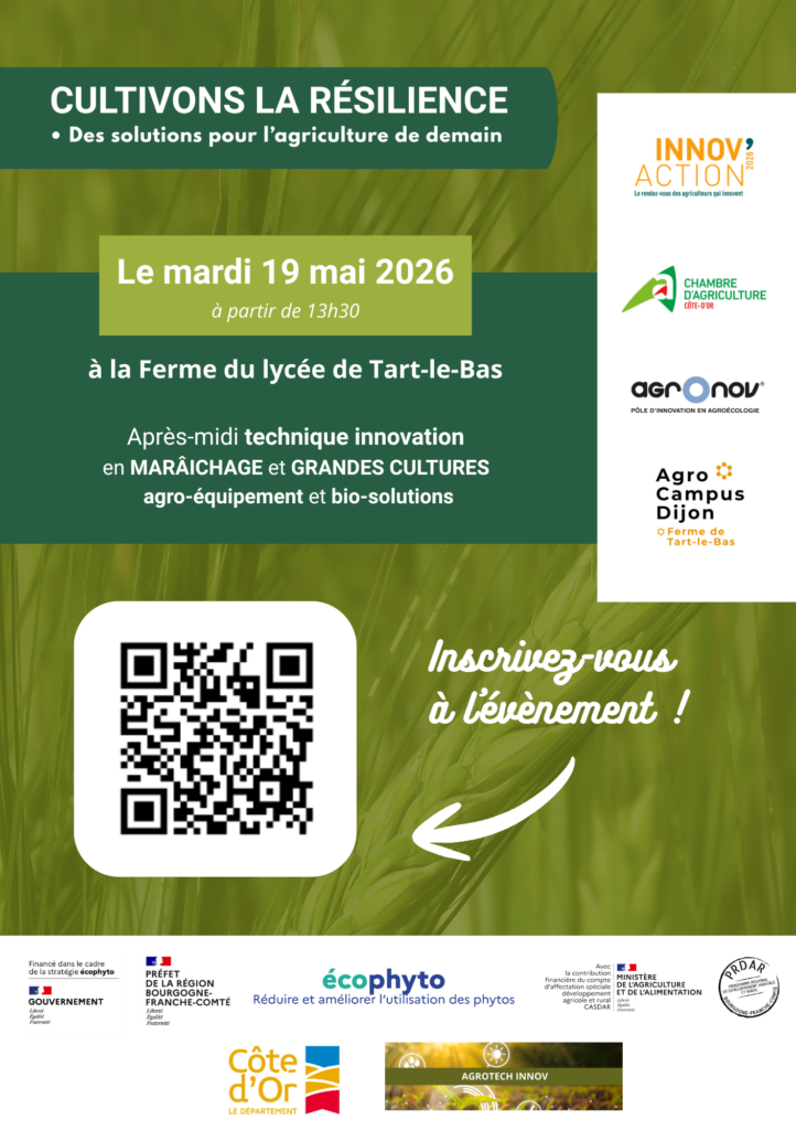 Dans le cadre de la dynamique de réduction de l’utilisation des produits phytosanitaires, la journée technique INNOV’ACTION s’inscrit comme un rendez‑vous incontournable du calendrier agricole en Côte-d’Or. Organisé le 19 mai 2026 à 13h30 par la Chambre d’agriculture de Côte-d’Or et AgrOnov, en partenariat avec la Ferme de Tart‑le‑Bas (exploitation agricole d’Agro Campus Dijon), cet événement met en lumière des solutions concrètes pour renforcer la résilience des exploitations en grandes cultures et en maraîchage.